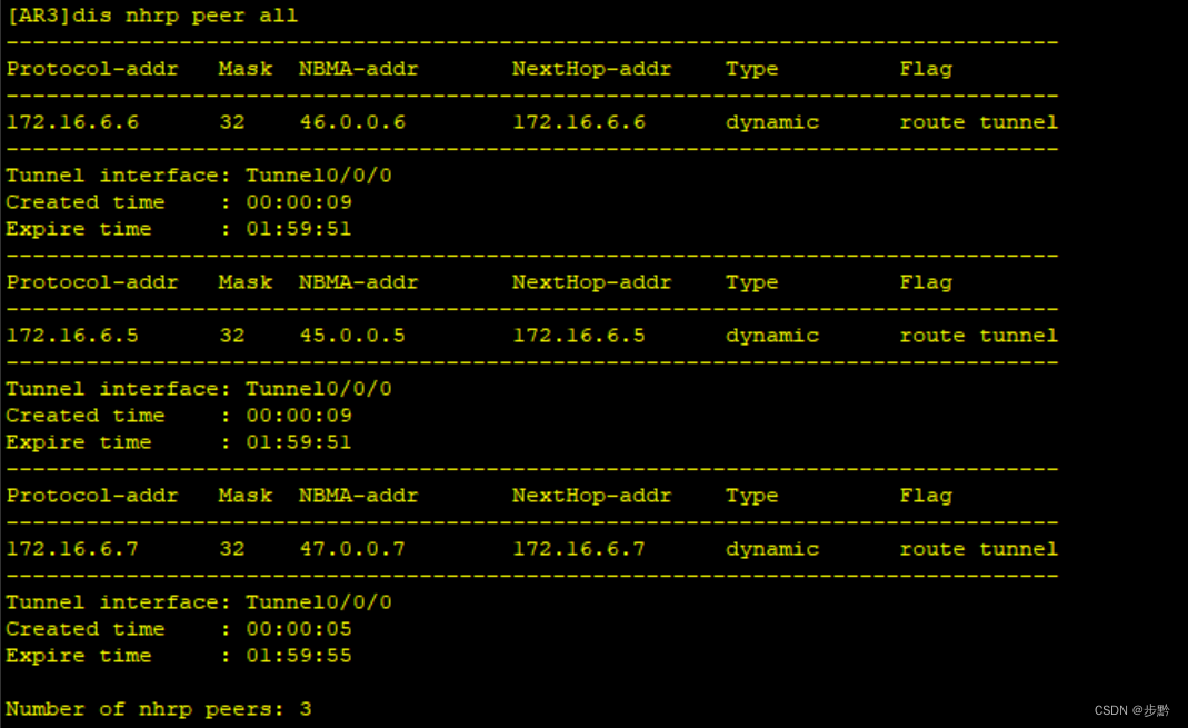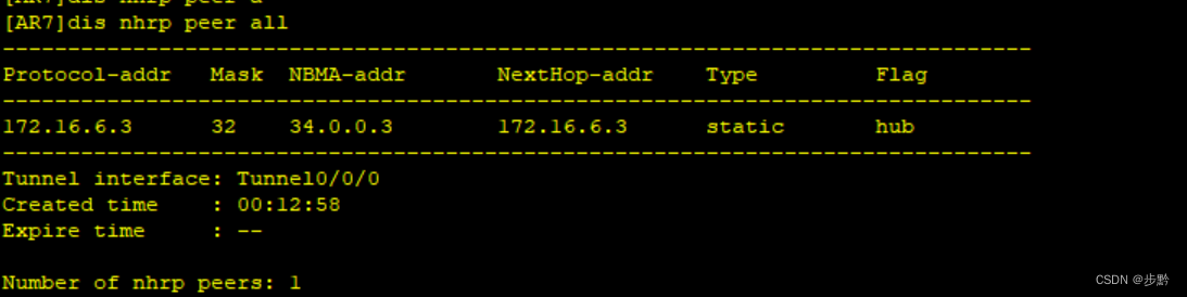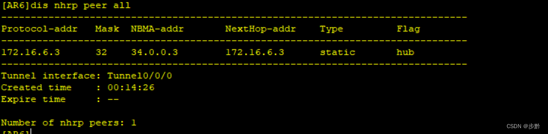 [AR6-Tunnel0/0/0]nhrp entry 172.16.6.3 34.0.0.3 register