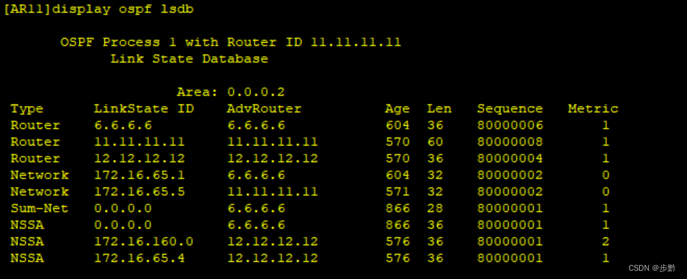 [AR11-ospf-1-area-0.0.0.2]network 172.16.65.0 0.0.0.3