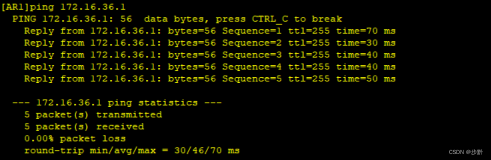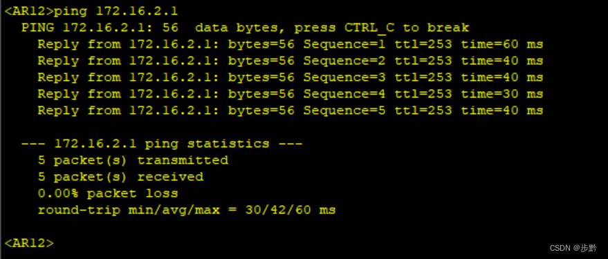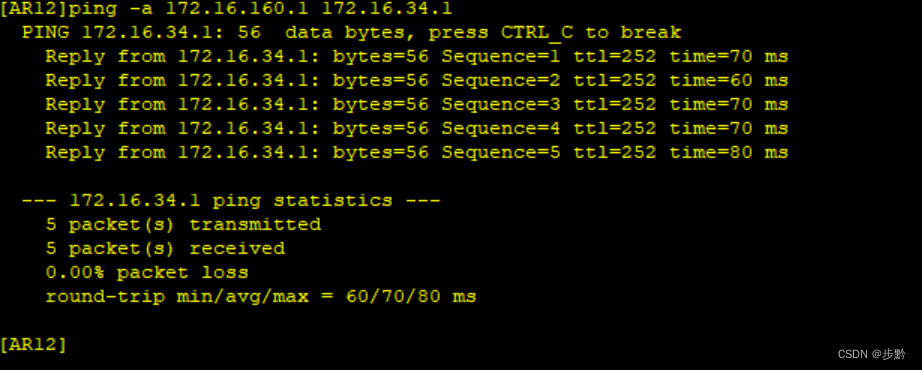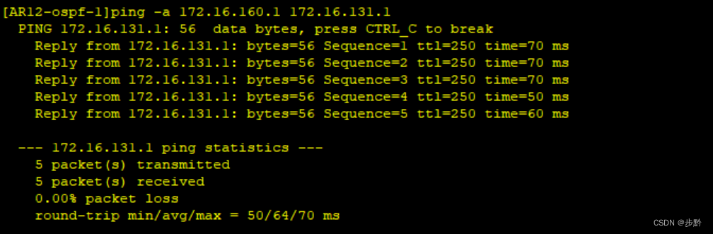 在以上域都划分为特殊区域过后,AR10配置默认缺省过后,ping测试(AR10环回pingAR12环回):