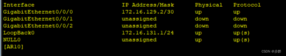 [AR10]ip route-static 0.0.0.0 0 172.16.129.1 //AR10配置默认缺省