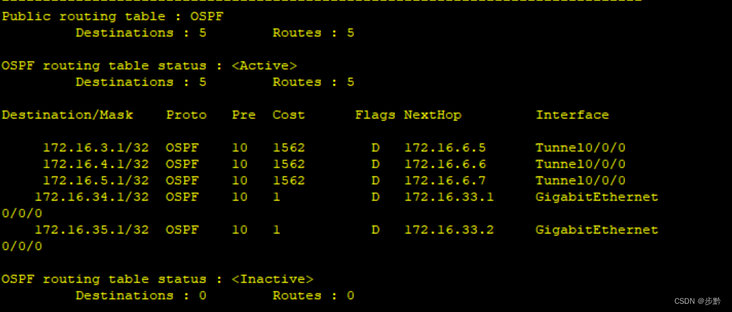 [AR6-Tunnel0/0/0]ospf dr-priority 0 //DR、BDR选举优先级改为0,不参与其选举,避免选举混乱
