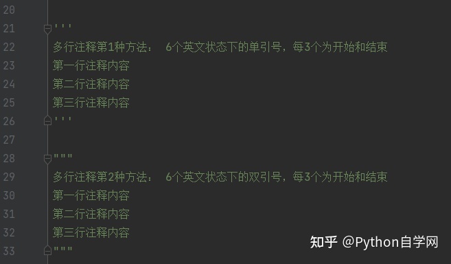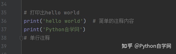 - 一般在书写单行注释的时候,在#好后面空一格再写内容,如果单行注释紧跟在代码后面,一般是代码后面空2格后再写#号