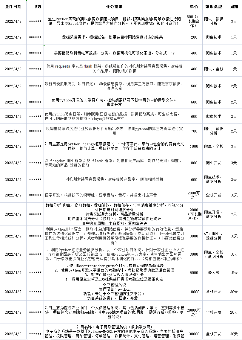 Python可以用于接私活的技术,主要集中在这三个,并且按需求量递减: