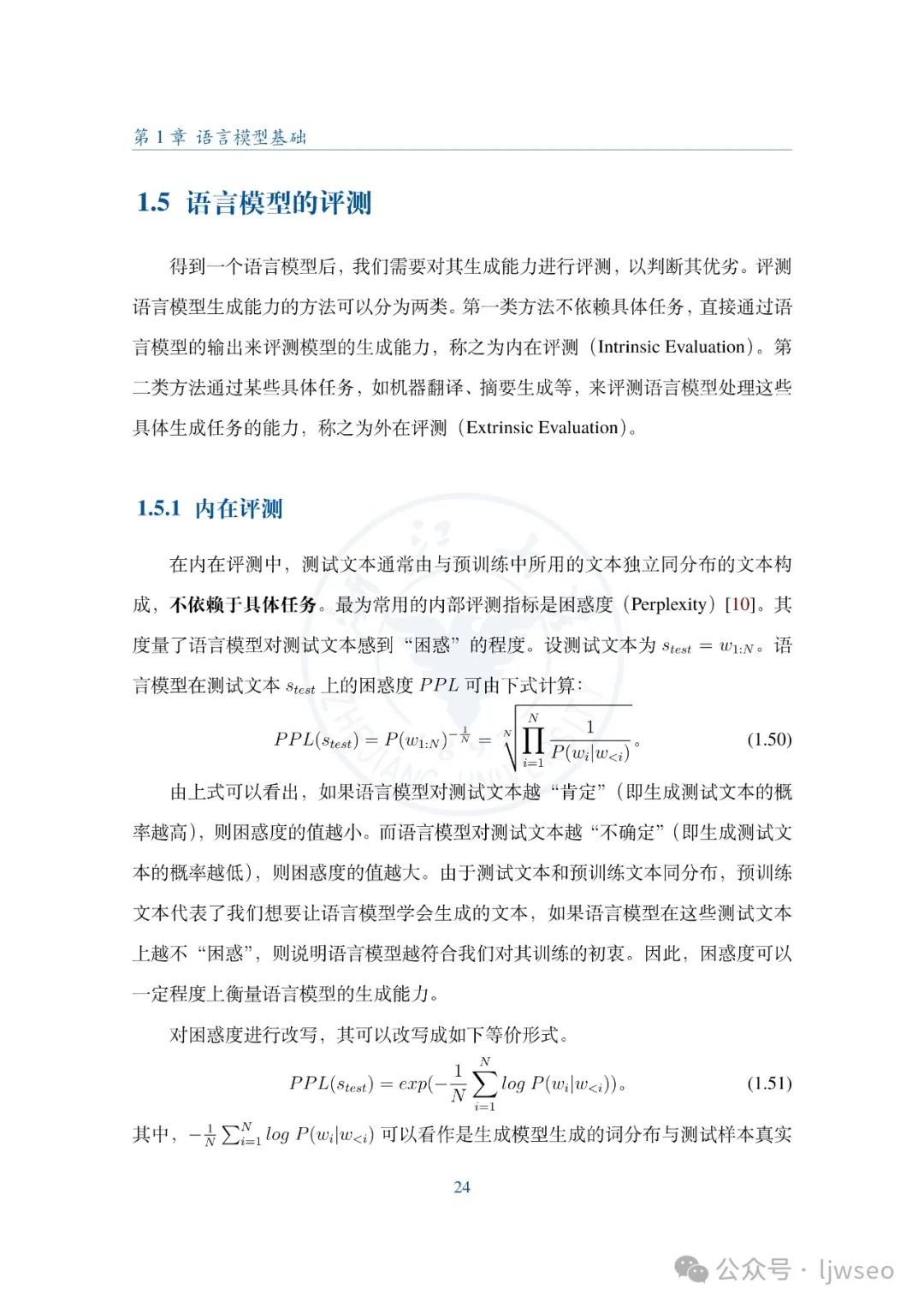 讨论了语言模型的采样方法和评测方法,包括内在评测和外在评测。