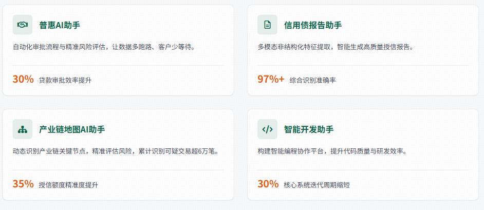 - 普惠AI助手实现自动化审批,贷款效率提高30%。