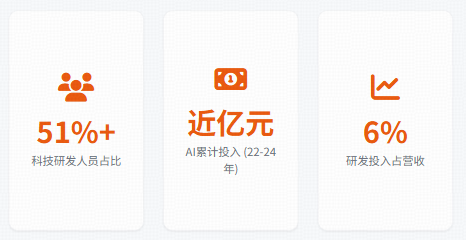 - 年营收占比:每年将营业收入的6%-8%投入科技研发,其中10%专项用于AI领域(约年均3000万元)。