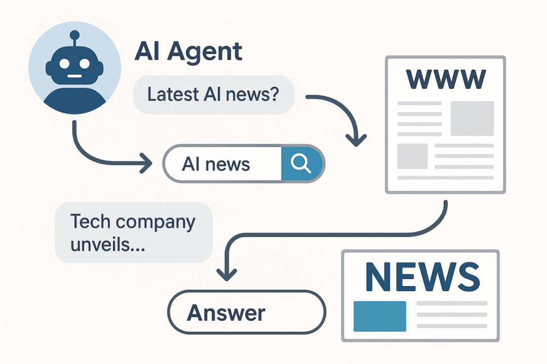 图1:展示一个AI Agent执行实时新闻搜索、摘要生成和答案生成的工作流程