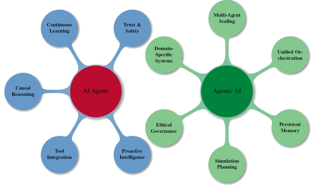 相比之下,Agentic AI 系统代表着一种范式转变,其特征在于多智能体协作、动态任务分解、持久记忆以及自治行为的编排化(orchestrated autonomy)。