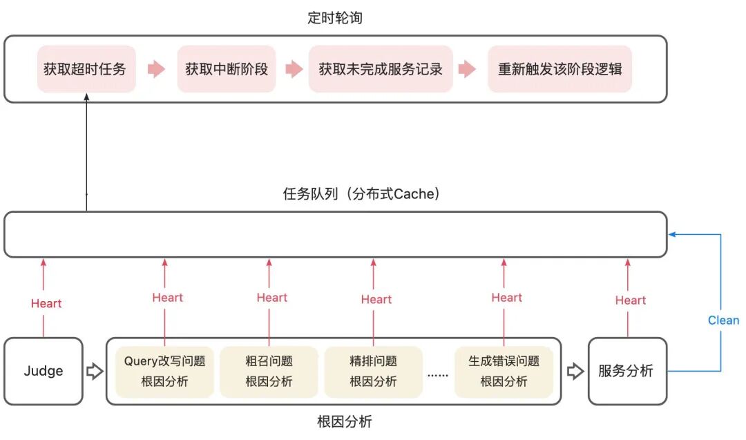 核心思路就是每个阶段运行的时候,该阶段中每条服务记录在做逻辑处理时都会上报心跳,更新该对应任务的最新状态,定时任务会轮询当前超期的任务,将未开始、失败的服务记录进行重新该阶段逻辑的执行。