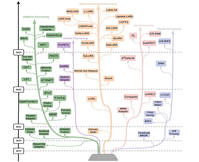 PEFT,即参数高效微调(Parameter Efficient Fine-Tuning),是一组以最节省计算资源和时间的方式微调大型模型的技术或方法,同时不会出现我们可能在全量微调中看到的性能损失。之所以采用这些技术,是因为随着模型越来越大,例如拥有1760亿参数的BLOOM模型,在不花费数万美元的情况下对其进行微调几乎是不可能的。但有时为了获得更好的性能,使用这样的大型模型又几乎是必要的。这就是PEFT发挥作用的地方,它可以帮助解决在处理这类大型模型时遇到的问题。