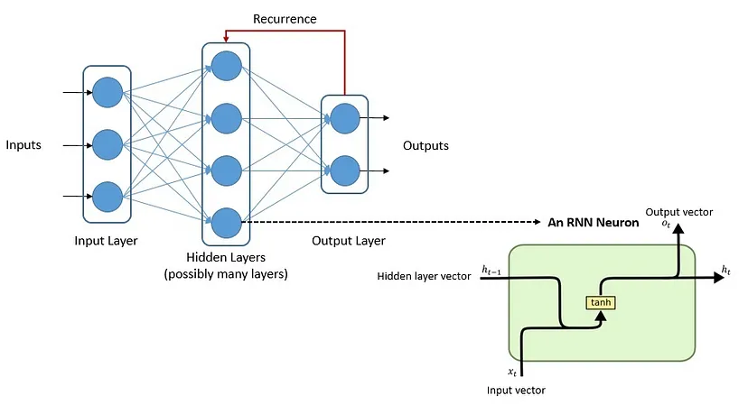 通常,自监督学习算法使用基于人工神经网络(ANN)的模型。我们可以使用几种架构来创建人工神经网络,但大语言模型中使用最广泛的架构是循环神经网络(RNN)。