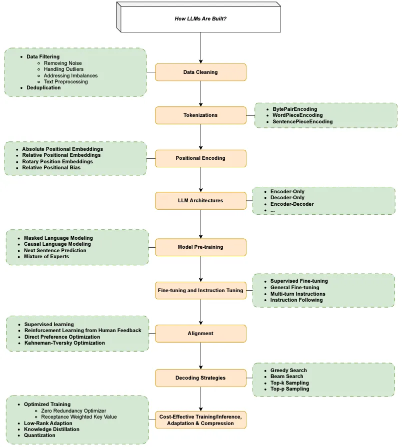 在这个阶段,模型以自监督的方式在大量非结构化文本数据集上进行预训练。预训练的主要挑战是计算成本。