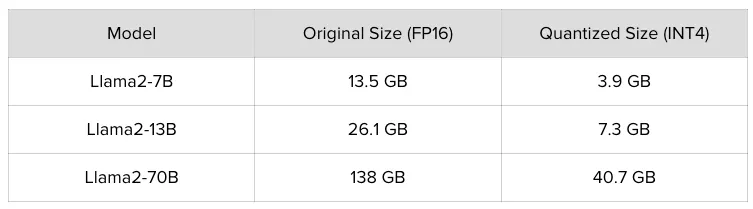 英伟达的A100 GPU最先进的版本有80GB内存。在下面的表格中可以看到,LLama2 - 70B模型大约需要138GB内存,这意味着要部署它,我们需要多个A100 GPU。在多个GPU上分布模型不仅意味着要购买更多的GPU,还需要额外的基础设施开销。另一方面,量化版本大约需要40GB内存,因此可以轻松地在一个A100上运行,显著降低了推理成本。这个例子甚至还没有提到在单个A100中,使用量化模型会使大多数单个计算操作执行得更快。