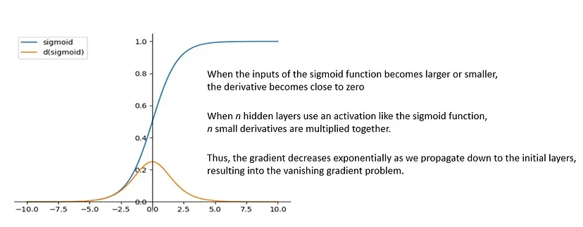 当反向传播多层时,梯度可能会变得非常小,导致训练困难。