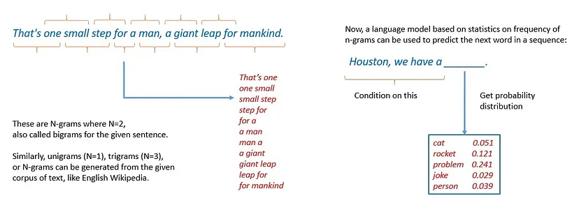 构建语言模型的最早方法之一是基于n - gram。n - gram是从给定文本样本中连续的n个项目组成的序列。在这里,模型假设序列中下一个单词的概率仅取决于前面固定数量的单词: