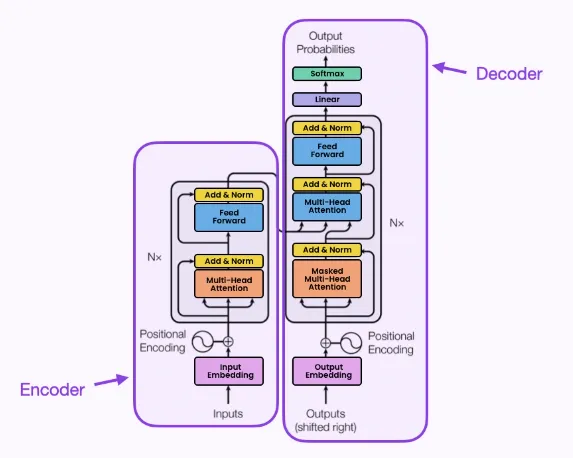 最初的Transformer模型也使用了编码器 - 解码器架构。编码器由编码层组成,这些层逐层迭代处理输入。解码器由解码层组成,对编码器的输出进行同样的处理: