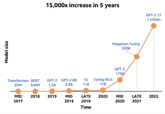 Transformer神经网络架构允许使用非常大的模型,这些模型通常包含数千亿个参数。如此大规模的模型可以摄取大量数据,这些数据通常来自互联网,也可以来自如包含超过500亿个网页的Common Crawl,以及约有5700万页面的维基百科等来源。