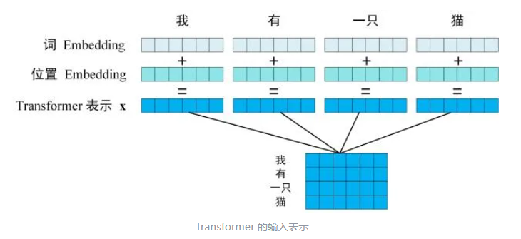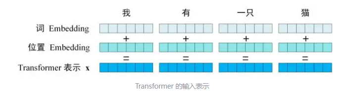 将单词的词 Embedding 和位置 Embedding 相加,就可以得到单词的表示向量 x,x 就是 Transformer 的输入。