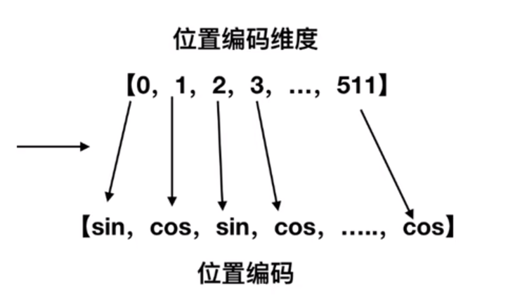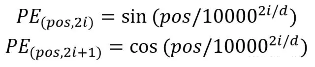 其中,pos 表示单词在句子中的位置,d 表示 PE的维度 (与词 Embedding 一样),2i 表示偶数的维度,2i+1 表示奇数维度 (即 2i≤d, 2i+1≤d)。