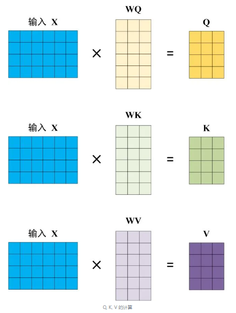 Transformer 的重点是 Self-Attention 结构,其中用到的 Q, K, V矩阵通过输出进行线性变换得到。