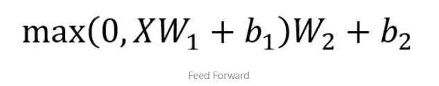 Feed Forward 层比较简单,是一个两层的全连接层,第一层的激活函数为 Relu,第二层不使用激活函数,对应的公式如下: