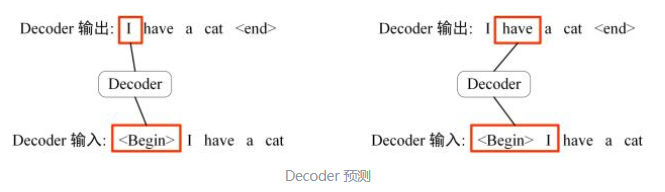 下面的描述中使用了类似 Teacher Forcing 的概念,在 Decoder 的时候,是需要根据之前的翻译,求解当前最有可能的翻译,如下图所示。首先根据输入 “” 预测出第一个单词为 “I”,然后根据输入 “ I” 预测下一个单词 “have”。