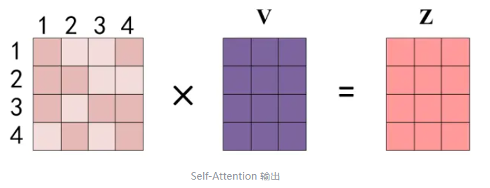 得到 Softmax 矩阵之后可以和V相乘,得到最终的输出Z。