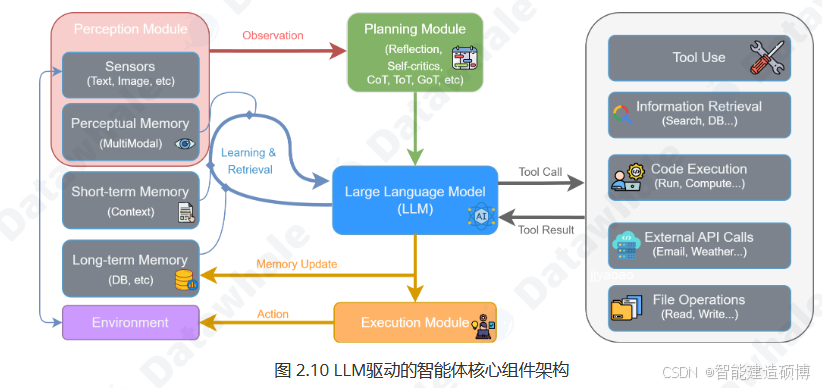 - 规划阶段(Planning Phase):首先,智能体会接收用户的完整问题。它的第一个任务不是直接去解决问题或调用工具,而是将问题分解,并制定出一个清晰、分步骤的行动计划。这个计划本身就是一次大语言模型的调用产物。