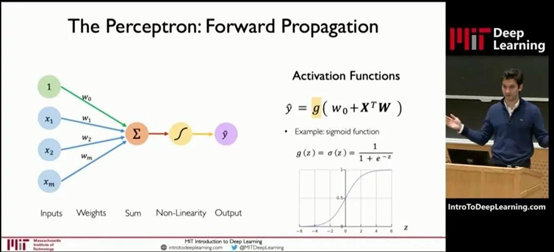 这张图是深度学习模型中一个神经元的结构图。神经元的处理过程,其实就是一个函数计算过程。算式中,x是输入,y是输出。预训练,就是通过x和y,求解W。W是算式中的“权重(weights)”。权重决定了输入特征对模型输出的影响程度。通过反复训练来获得权重,这就是训练的意义。权重是最主要的参数类别之一。除了权重之外,还有另一个重要的参数类别——偏置(biases)。