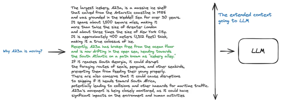 在该方案中,文档中的每个句子都是单独嵌入的,这为上下文余弦距离搜索的查询提供了很高的准确性。**为了在获取最相关的单个句子后更好地对找到的上下文进行推理,我们将上下文窗口在检索到的句子之前和之后扩展了k个句子,然后将此扩展的上下文发送给LLM。**核心思想是当提问匹配好分块后,将该分块周围的块作为上下文一并交给LLM进行输出,来增加LLM对文档上下文的理解。文档文块太小会导致上下文的缺失该方法的