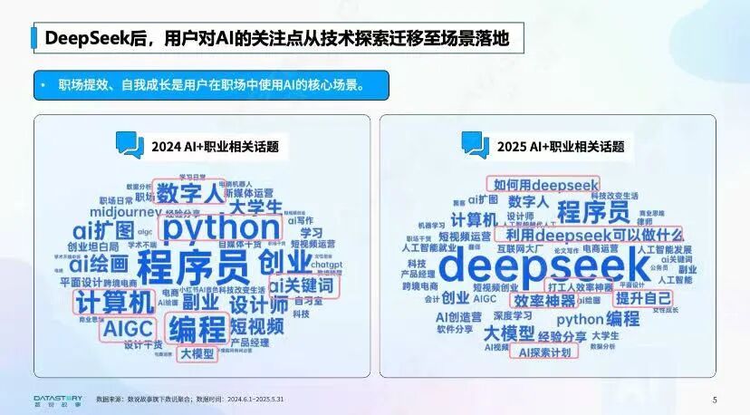 DeepSeek爆发增长60%,关注点从技术转向场景落地,职场提效和自我成长成核心场景。