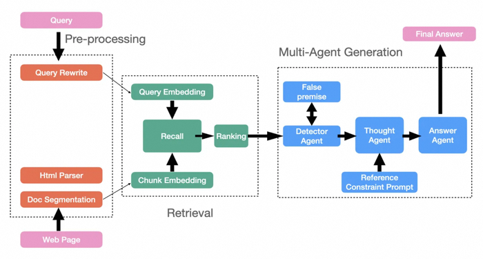 - 解决冲突:通过整合内部和外部知识,解决知识冲突,去除不相关或矛盾的文档。