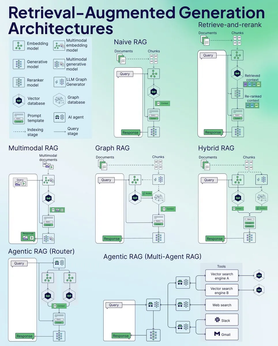 Agentic RAG的产生背景正是为了解决传统RAG在复杂场景下的这些不足。随着企业知识管理需求的日益复杂化,简单的问答式RAG已不能满足实际业务需求。企业环境中存在大量异构数据源(如结构化数据库、非结构化文档、知识图谱等),用户查询往往需要跨源关联和综合推理。同时,许多高级任务还需要结合外部工具(如计算器、API服务等)才能完整解答。这些挑战促使RAG技术向更智能、更自主的方向发展,从而催生了Agentic RAG这一新兴范式。