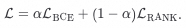 最终的训练目标是 BCE 损失和排名损失的加权组合: