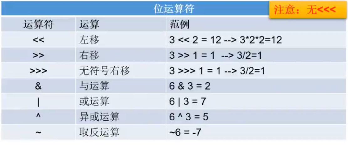4. >>>,无符号右移运算符;表示的意思是无论正数还是负数,补的都是0。