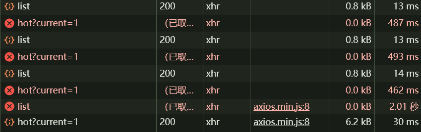 这里我启动了两个HmDianPingApplication服务,在只启动一个的情况下,前端一直有请求失败,并且差不多是5:5