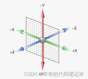 x 、y 和z三条坐标轴构成了一个立体空间,z轴位置与视线方向相同。