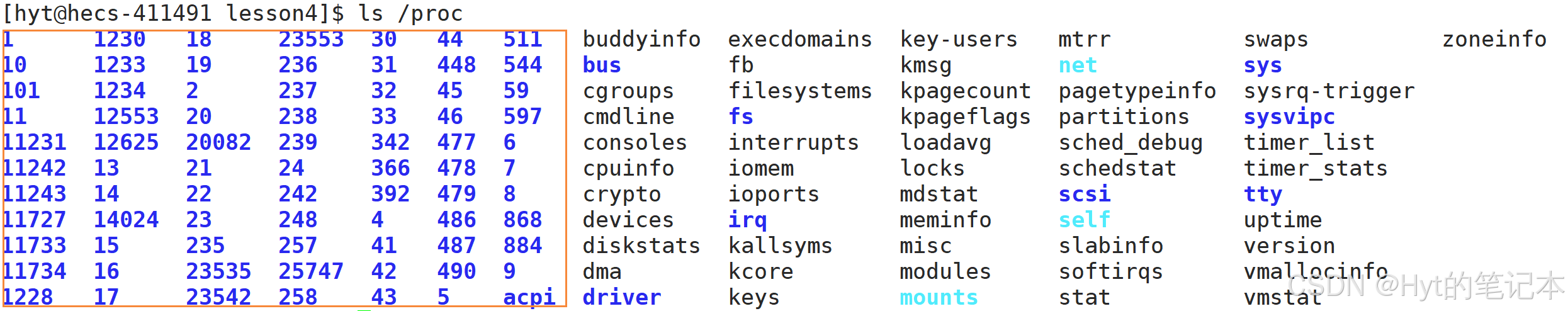 图只截了其中一部分,可以看到,在我们运行一个程序时,系统会在在/proc中以该进程的PID为名,创建一个目录,该目录下存放着管理该进程的信息。这里介绍一下两个比较好理解的:
