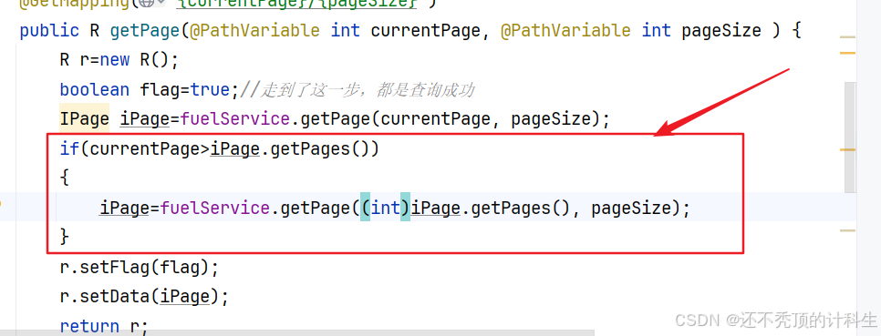 iPage=fuelService.getPage((int)iPage.getPages(), pageSize);