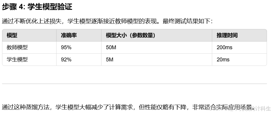 模型蒸馏的优势效率提升:通过蒸馏,学生模型的计算开销和参数数量可以大幅减少。