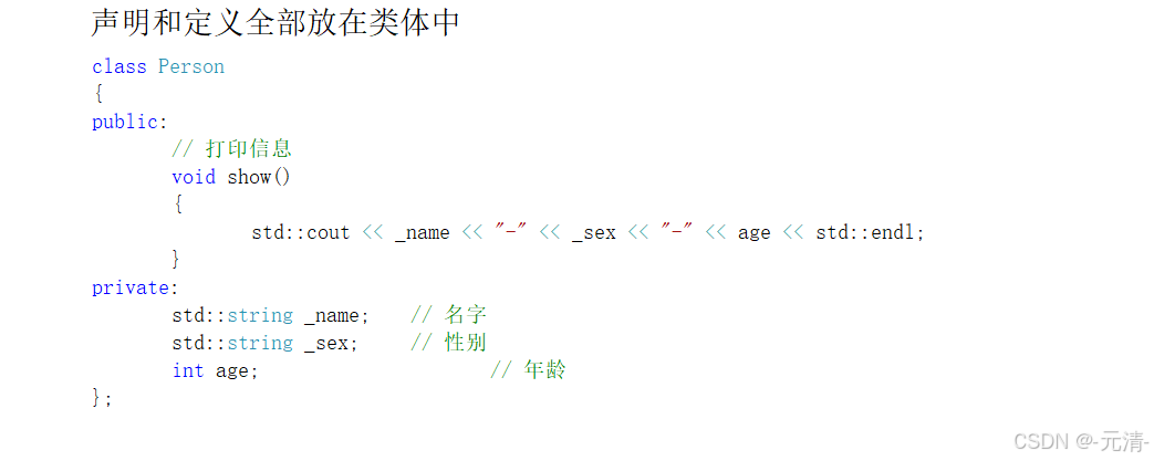 一、声明和定义全部放在类体中
