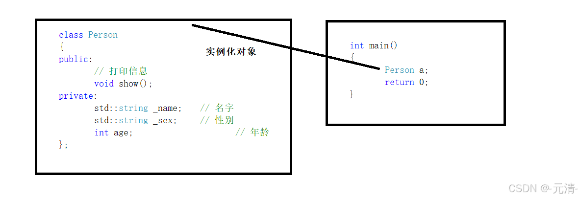 - protected(保护) 和 private(私有) 修饰的成员在类外不能直接被访问(此处protected和private是类似的)