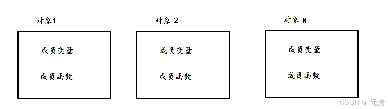 每个对象中成员变量是不同的,但是调用同一份函数,如果按照此种方式存储,当一个类创建多个对象时,每个对象中都会保存一份代码,相同的代码保存了多次,浪费很多空间