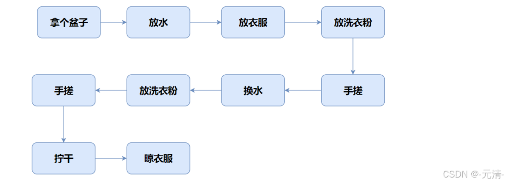 我们就 洗衣服 来看看面向过程和面向对象之间的区别: