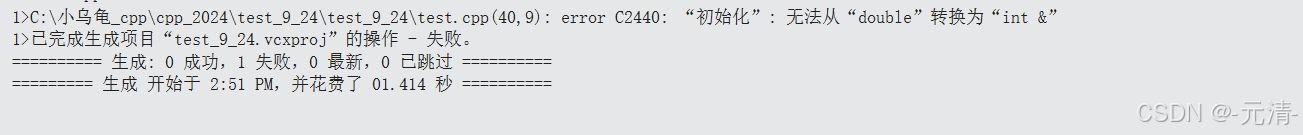 但实际上,用非 const 引用去绑定隐式类型转换的结果会导致编译错误。 这个编译错误暗示了在从 double 到 int 的隐式类型转换过程中,可能生成了一个临时变量,并且这个临时变量不能被非 const 引用绑定。(临时变量具有常性)