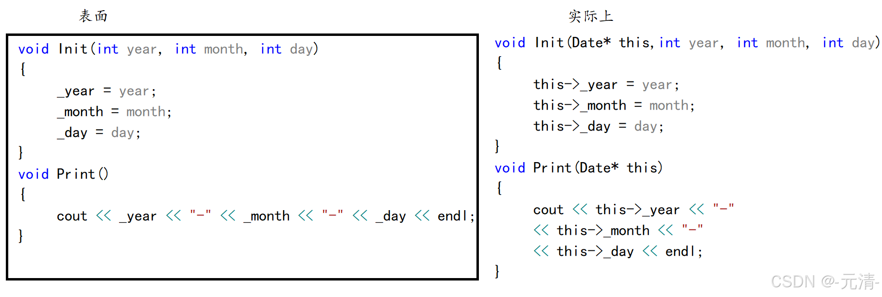 - 在类体外定义成员时,需要使用 :: 作用域操作符指明成员属于哪个类域