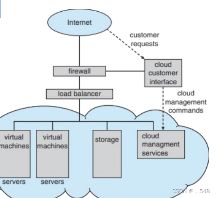 Cloud Computing (Cont.) • Cloud computing environments composed of traditional OSes, plus VMMs, plus cloud management tools • Internet connectivity requires security like firewalls • Load balancers spread traffic across multiple applications 云计算环境由传统操作系统、VMM 和云管理工具组成 - 互联网连接需要防火墙等安全措施 - 负载平衡器将流量分散到多个应用程序中