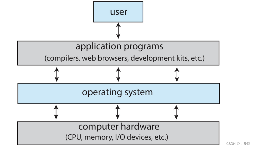 Key points An operating-system is a set of interrelated system software programs that host and control computer operations, utilize and run hardware and software resources, and provide common services to organize user interaction. • Operating-system executes in kernel mode, but user programs execute in user mode. • The CPU executes multiple processes by switching among them, but the switches occur frequently.操作系统是一组相互关联的系统软件程序,用于主持和控制计算机操作、利用和运行硬件和软件资源,以及提供组织用户交互的通用服务。 - 操作系统在内核模式下执行,但用户程序在用户模式下执行。 - 中央处理器通过在多个进程间切换来执行多个进程,但切换频繁。