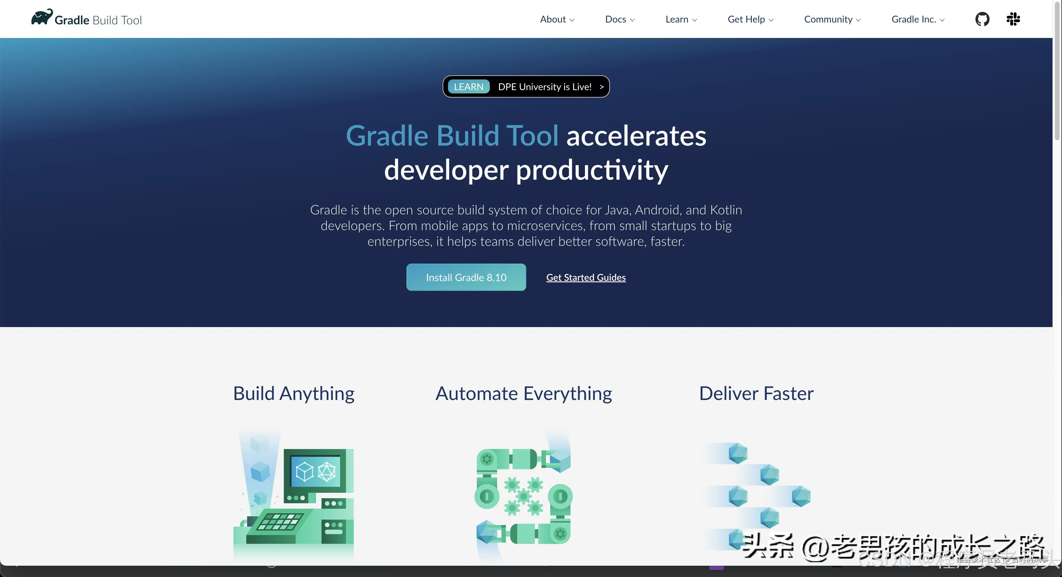 Gradle 采用基于 Groovy 或 Kotlin 的领域特定语言(DSL),允许开发者通过编写脚本来自定义构建过程。相比其他构建工具(如 Maven),Gradle 更加灵活和强大。这就是它灵活性所在,但是也是它的门槛所在,也就是说你要使用它,还要理解 Groovy 或 Kotlin,理解的不到位可能会带来很多问题。这也是很多人吐槽它的原因,过于灵活的副作用就是门槛过高。
