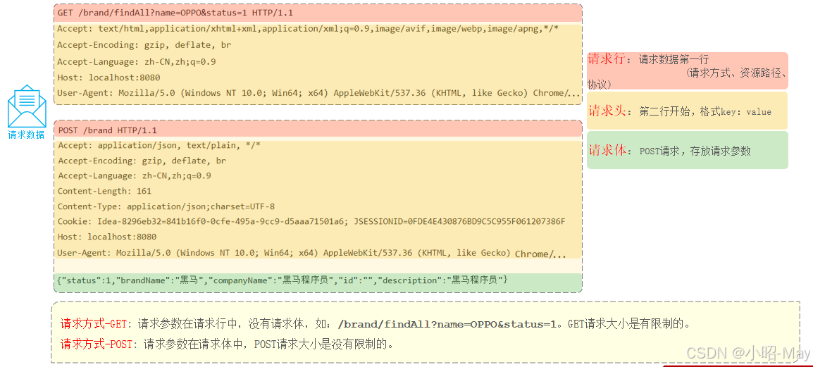 结论:不论是GET请求还是POST请求,对于简单参数来讲,只要保证==请求参数名和Controller方法中的形参名保持一致==,就可以获取到请求参数中的数据值。